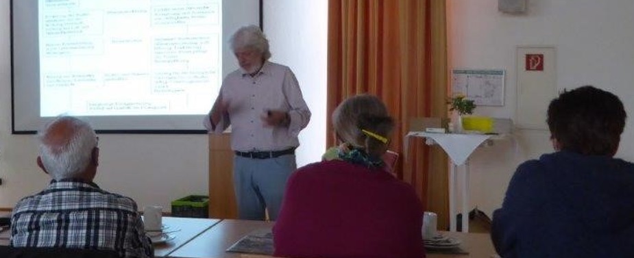 Nach einer Pause mit Kaffee und Kuchen, ging es weiter mit dem Thema Blütenvielfalt stattlangweilige Immergrüne im Kleingarten. Dieter Kerpa informierte anschaulich mit Bildern und kurzen Filmen über alternative und heimische Gehölze die hervorragend in den Kleingarten passen. Es prägen immer noch Kirschlorbeer, Thuja, Scheinzypresse und andere Gehölze das gängige Bild in vielen Kleingärten, die so gut wie keinen ökologischen Nutzen erfülle. Dieter Kerpa stellte heimische Gehölze vor die aufgrund ihrer Schönheit, aber auch wegen ihrer ökologischen Bedeutung viel besser und sinnvoller sind. Besonders für den Kleingarten sind Wergelien, Deutzien, Sommerfieder, Felsenbirne und die Kornelkirsche geeignet. Für viel Teilnehmer war interessant zu erfahren, dass der Kirschlorbeer in seiner ganzen Form hochgiftig ist und sicherlich in keinen Garten mit Kleinkindern gehört.