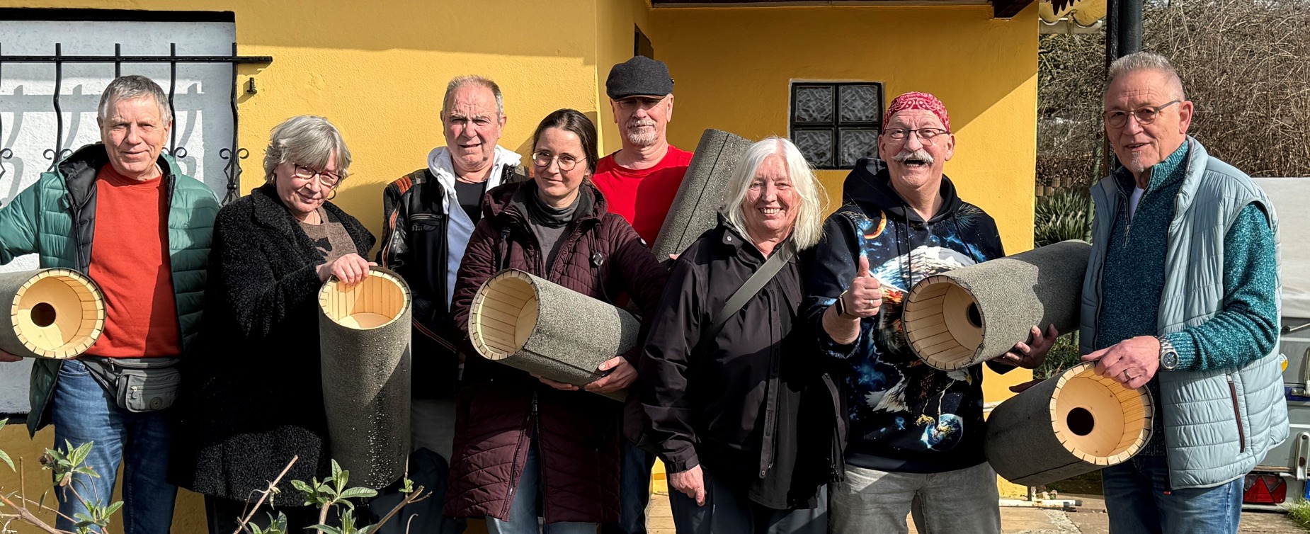 Mitglieder des Vorstandes des BVOS mit den Steinkauz-Nisthilfen.
